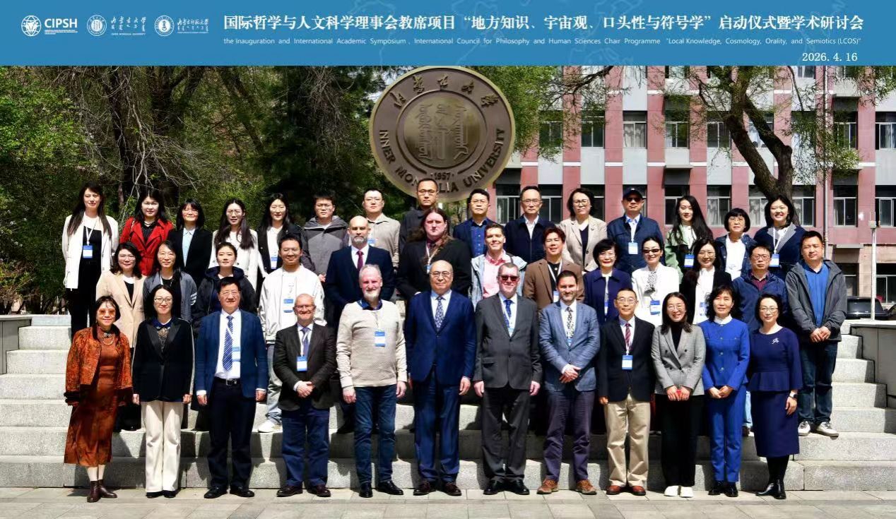 2026年4月16日,由内蒙古大学与内蒙古师范大学联合主办,内蒙古大学北疆民族语言文化交融与传播研究中心、内蒙古大学文学与新闻传播学院、内蒙古师范大学民族学人类学学院共同承办的国际哲学与人文科学理事会(CIPSH)教席项目“地方知识、宇宙观、口头性与符号学”启动仪式暨学术研讨会成功举行。纳日碧力戈教授荣任该教席项目的联合主席。